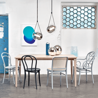 OM TON - Grundlagt i 1861 af Michael Thonet, TON er en tjekkisk producent med speciale i bøjet træmøbler. De fremstiller stadig alle møbler i hånden på deres fabrik i Tjekkiet ved hjælp af de samme traditionelle teknikker. De laver "møbler med mennesker og til mennesker" og opererer med en streng no waste-politik, som holder salgsprisen på et meget fornuftigt niveau. TON har en dyb virksomhedshistorie, der er synlig i deres originale designs, der stadig er til salg i dag. Deres samarbejder med arkitekter og designs har givet en moderne kant til den eksisterende kulturarvsserie og skubbet videre med helt nye moderne designs.